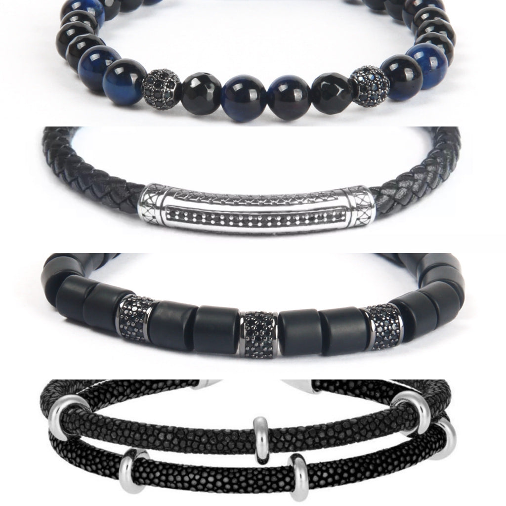 Gray Tuscan Leather Double Layer Silver Bracelet