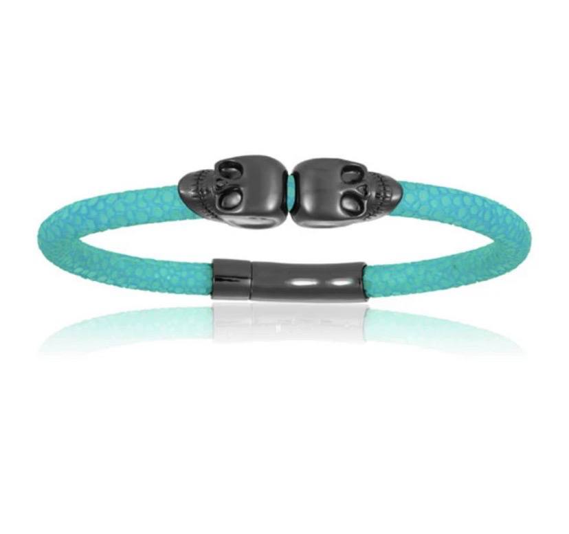 Rhodium Twin Skull Turquoise Stingray Bracelet