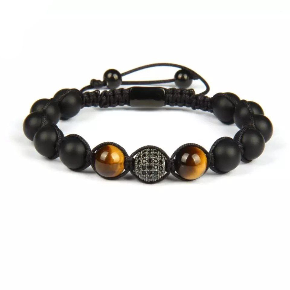 Double Tiger Eye Onyx and Cz Rhodium Bracelet